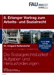 Der 8. Erlanger Vortrag zum Arbeits- und Sozialrecht fand am 11. Dezember 2018 um 18:30 Uhr mit Frau Dr. Irmgard Kellendorfer, Präsidentin des Sozialgerichts Nürnberg statt.